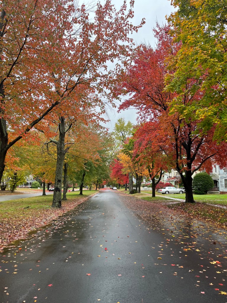I’ve been enjoying the season’s burgundy and gold leaves in the esplanade, making it extra regal as I saunter. But just this week, I thought about how I haven’t seen my neighbors out in a while. Tonight, as the light waned, we walked passed their house and I had a feeling. Immediately, they came out on their porch and called, “Anne! Hang on!” I knew what had happened without anyone saying it.